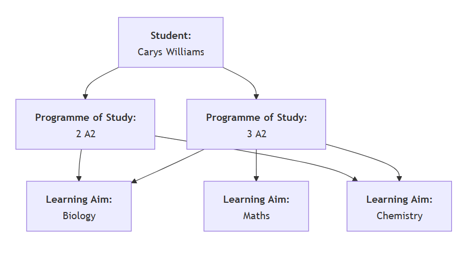 This guide outlines how Programmes and Learning Aims (also known as Learning Activities) are structured and managed within Welsh schools, detailing the various fields involved and how to update them. For Welsh post-16 data collections, data is required at both programme of study and learning aim level.