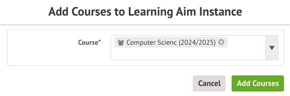 You can add courses to a Learning Aim Instance by clicking on the Instance from the Learning Aim's overview page.