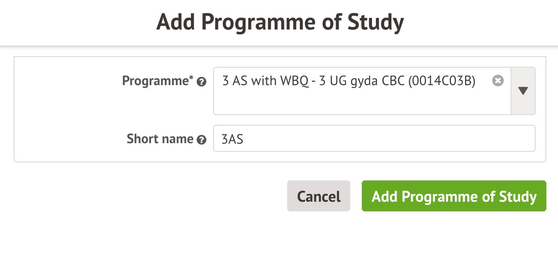 - Click the green Add Programme of study