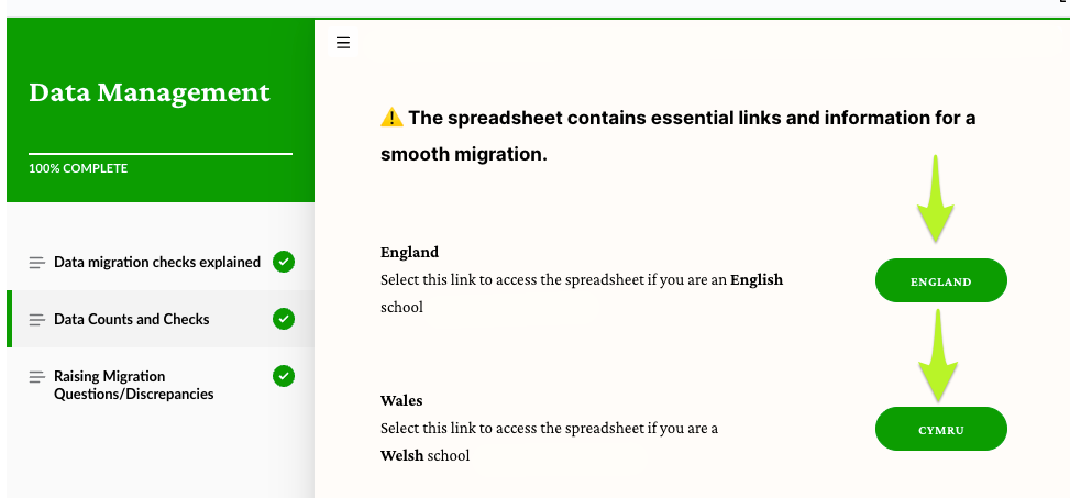 • Obtain your data count figures from your current MIS on your booked migration date for both your Dummy Migration (Week 3) and Final Migration (Week 10). The counts you should gather are listed within the downloadable checklist highlighted further above where you can input these figures.