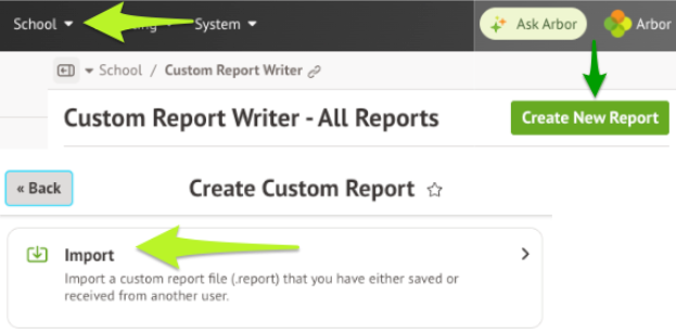 2. In your Arbor site, go to School > Custom Report Writer.