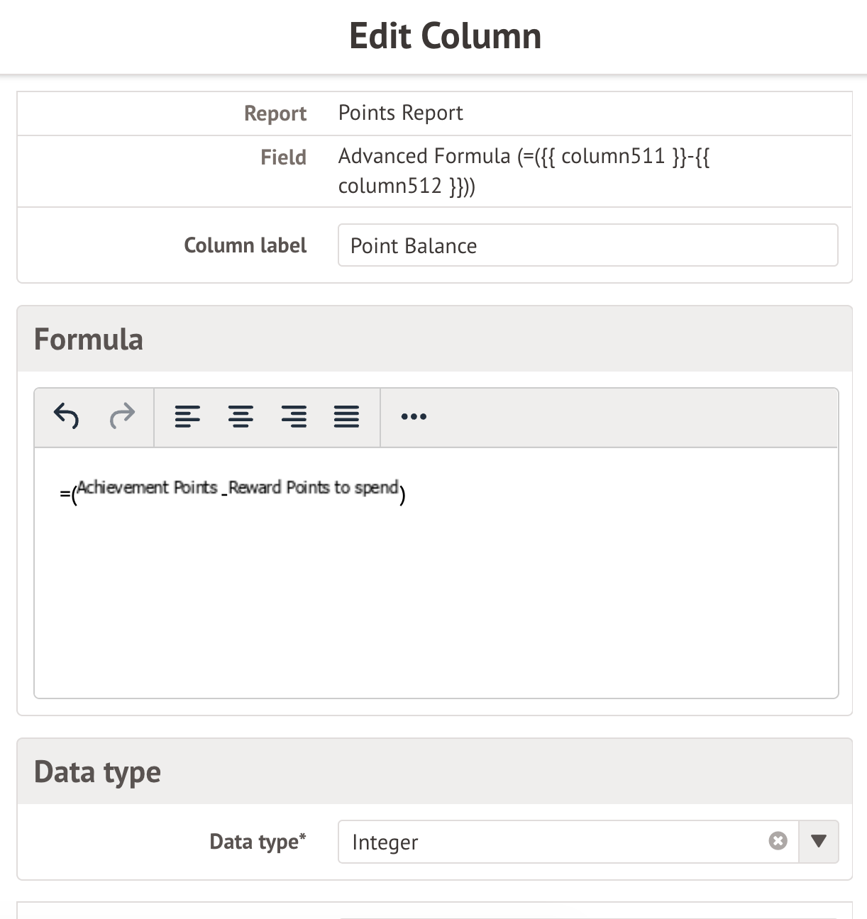 If you wish, you can also add an advanced calculation formula field, where you would create a formula based on your positive points and then deduct your ‘spending’ points (in this example, the Reward Points) to view a tally of the student's spendable points balance.