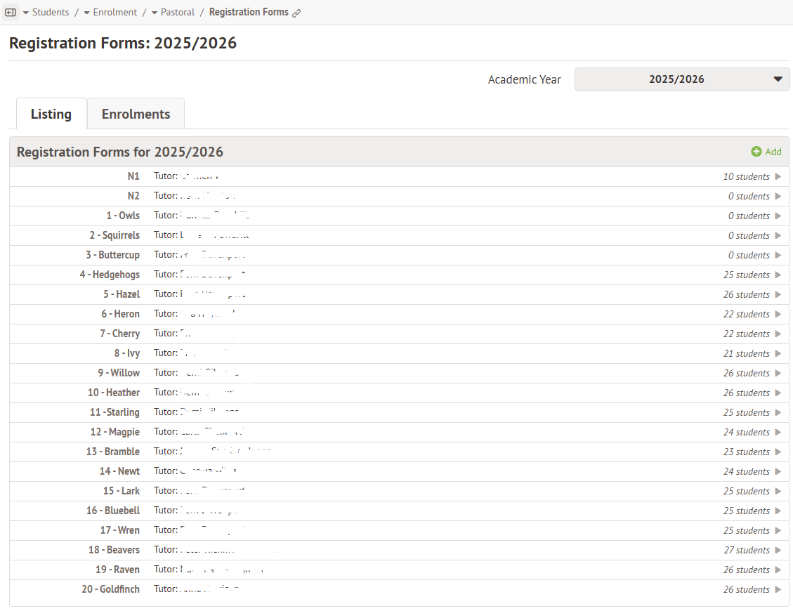 • This can be viewed in Students > Enrolment > Pastoral > Registration Forms.