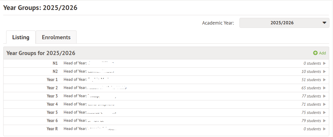 • This can be viewed in Students > Enrolment > Pastoral > Year Groups.