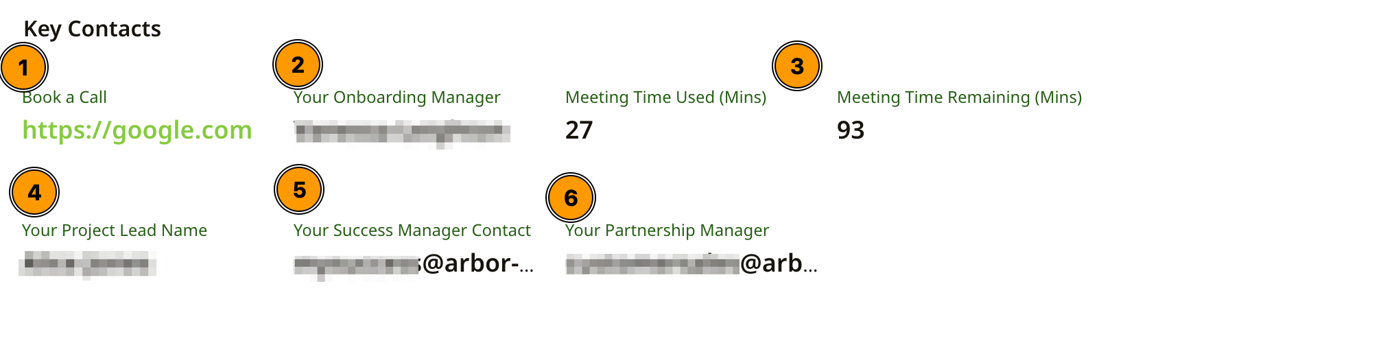 - This area shows you the name of your Customer Onboarding Manager. There is a link to their email so you can reach out to them.