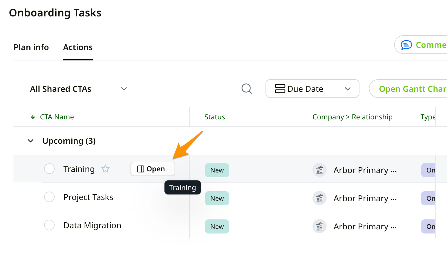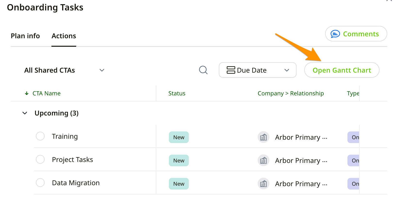 - Onboarding Task Plan: This contains all the onboarding tasks you will be working on over the course of your implementation. It is split into three different sections: