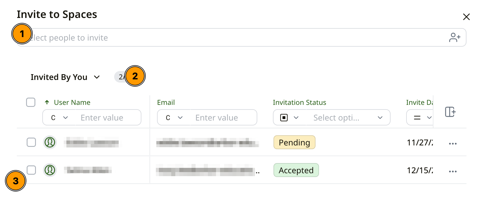 - This toggle allows you to see users you have invited, as well as all users invited.