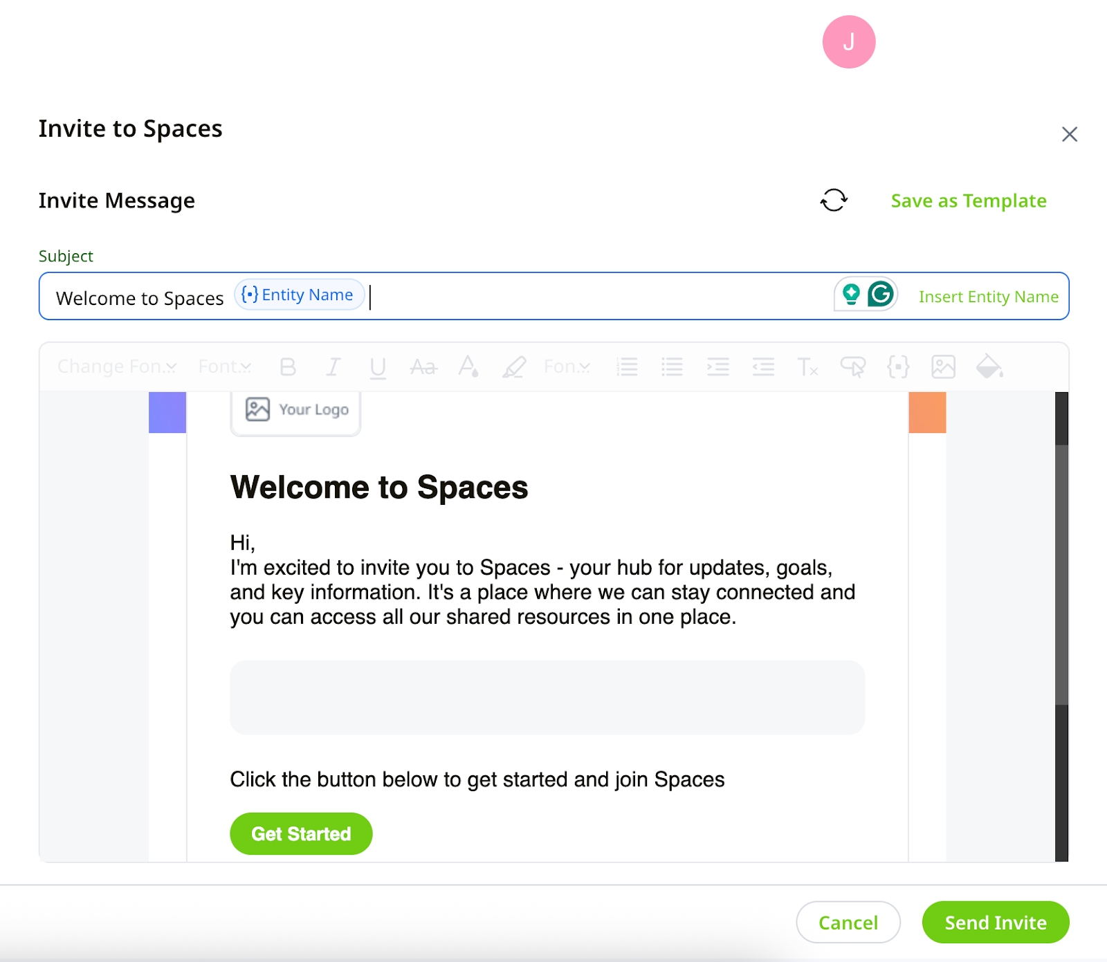 Once your onboarding starts, you will receive an email inviting you to Spaces, and it will look like this: