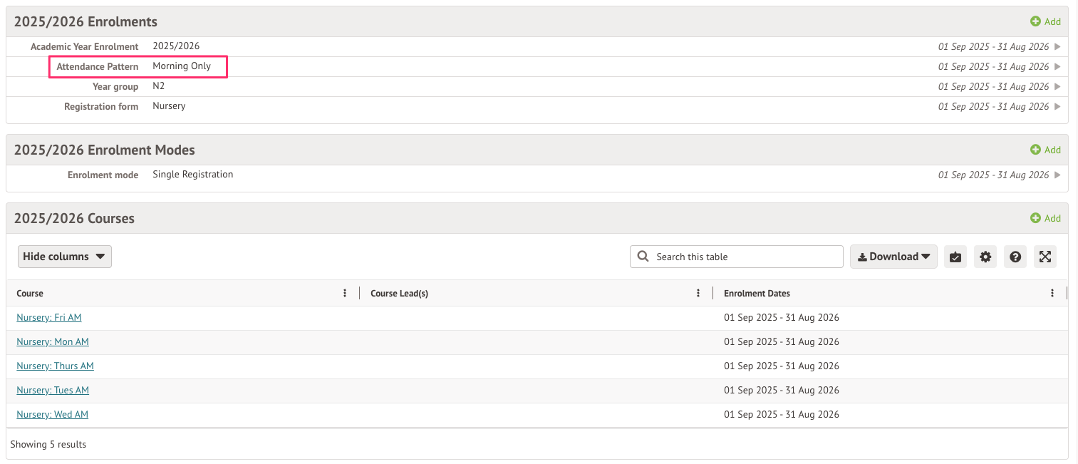 - Check that there is an Attendance Pattern set in the Enrolment section