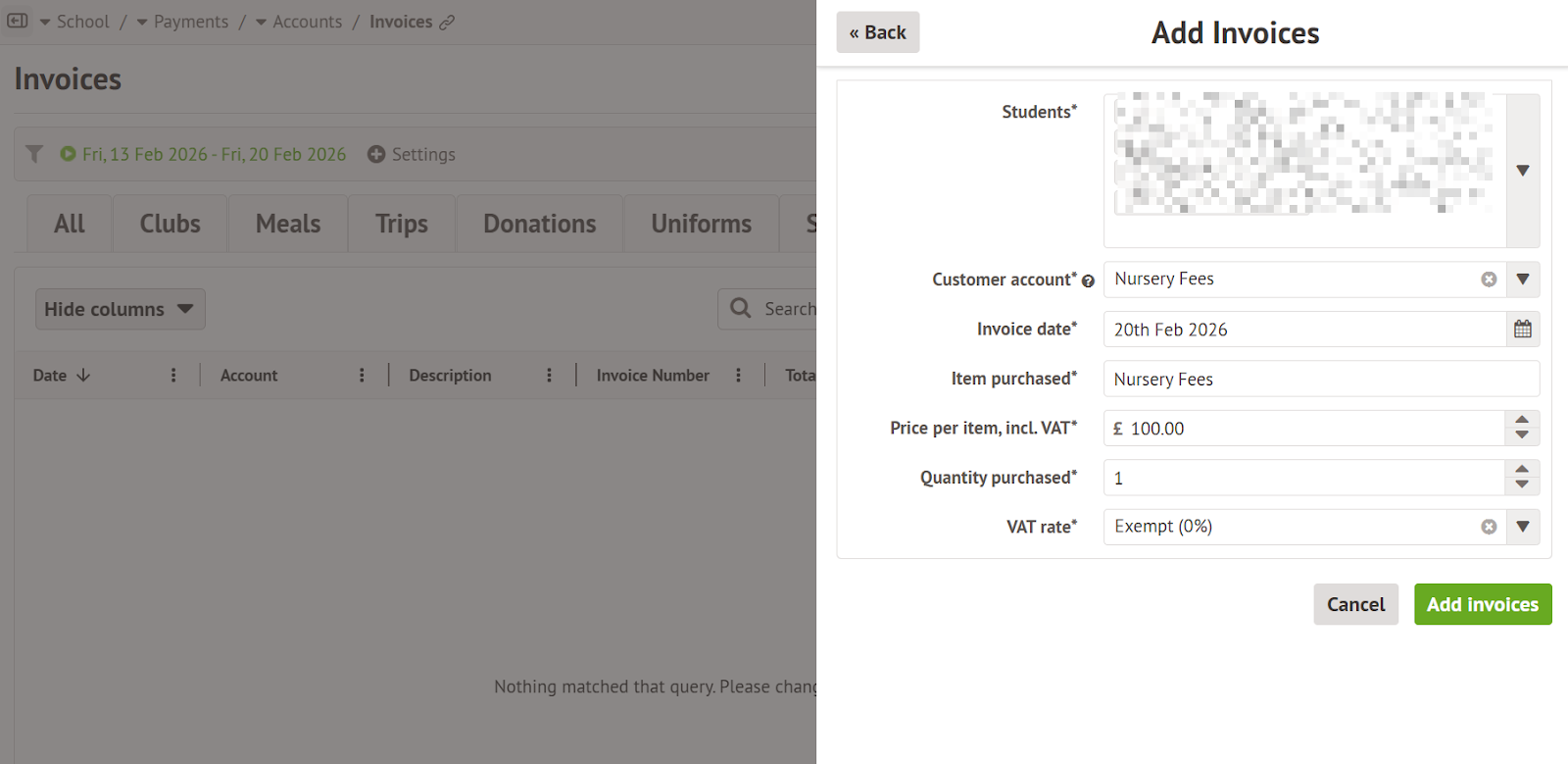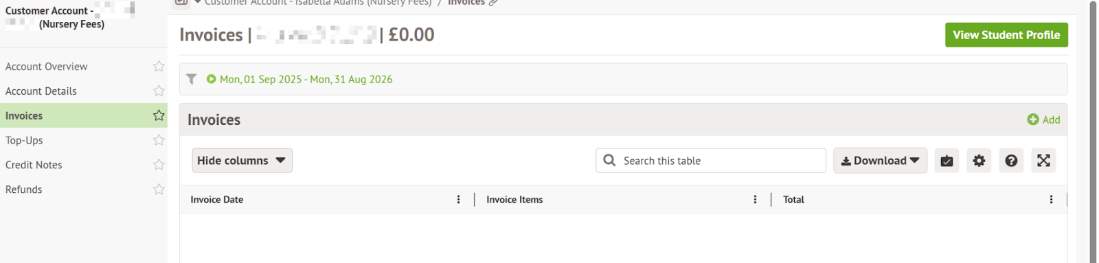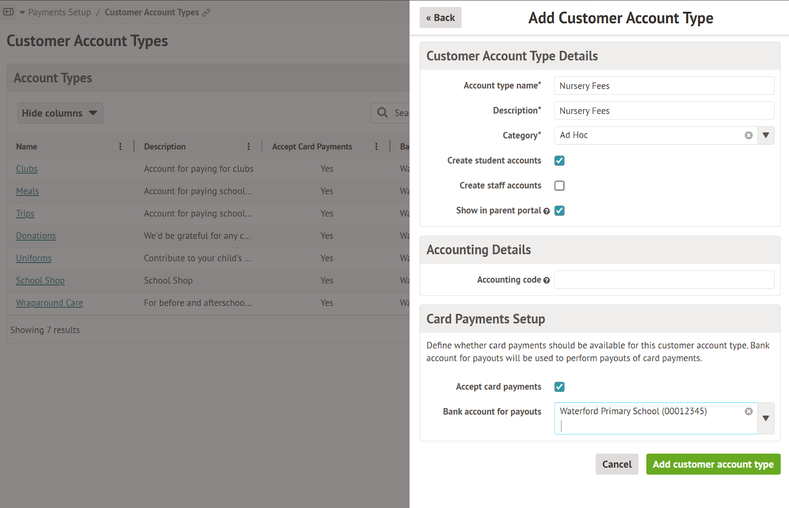If you wish to issue invoices to charge parents for Nursery fees, then a new Customer Account Type can be created. See more information on Customer Account Types.