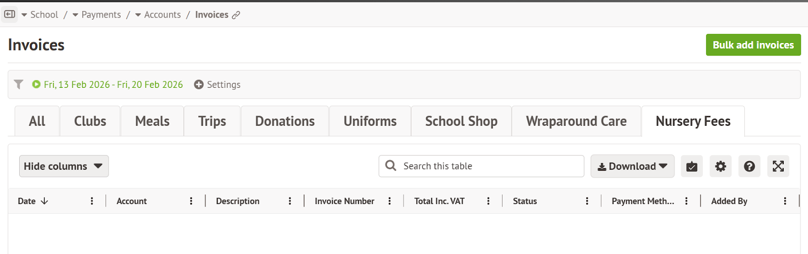 - Click the green Bulk Add invoices button