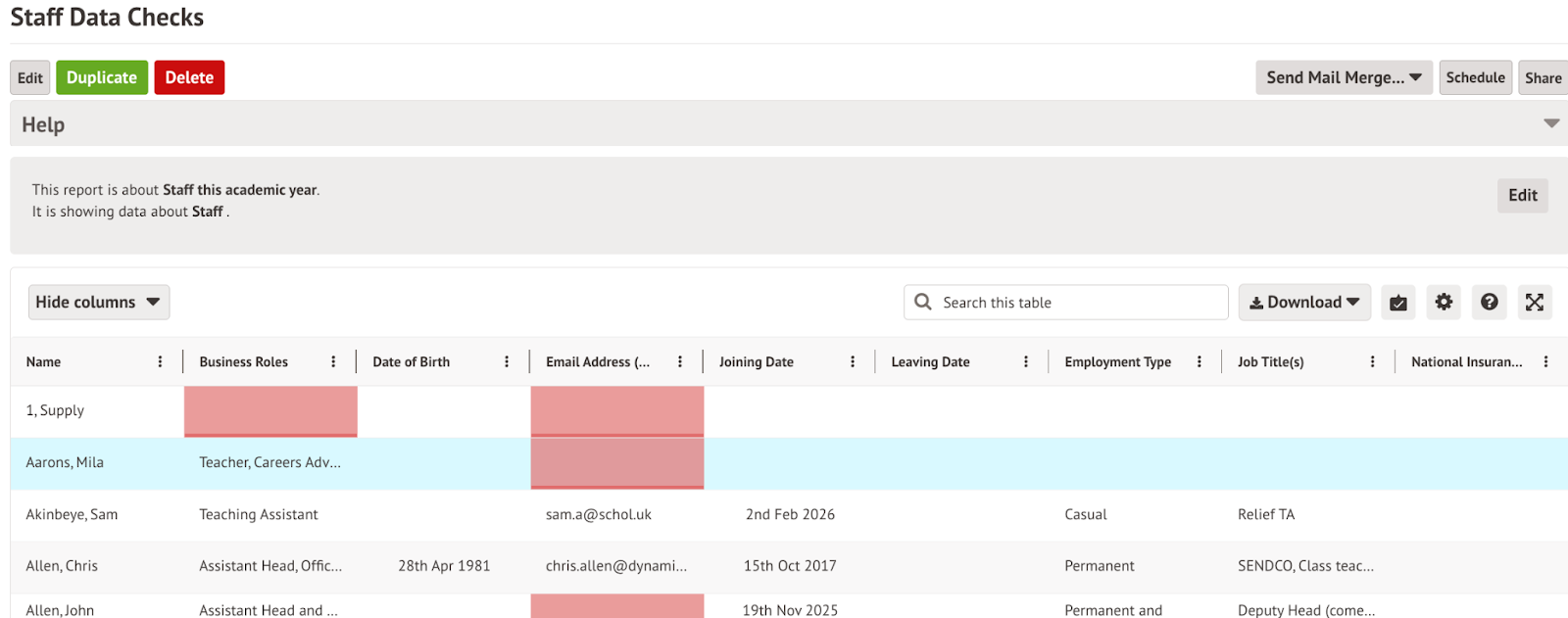 Staff Data Checks