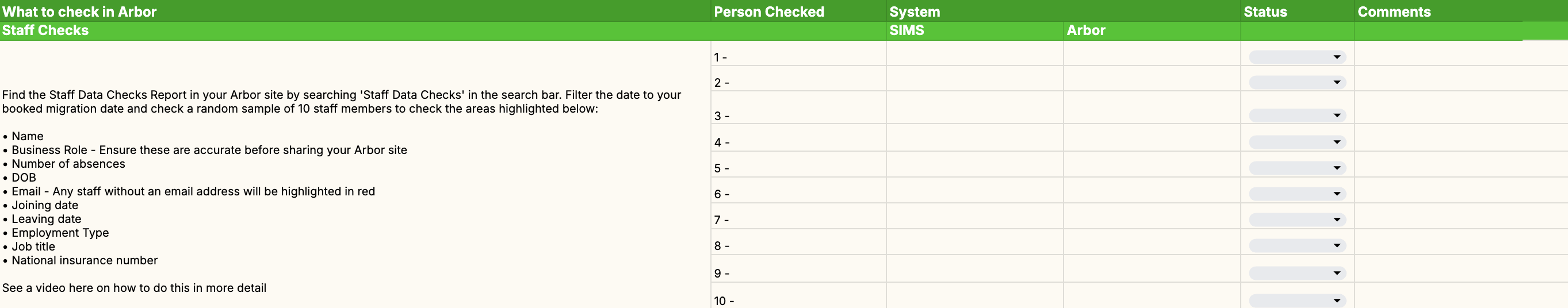 Step 1 - Pick a Sample of 10 Staff that you’ll check the data of in this Arbor report, against their data in your previous MIS - SIMS/Bromcom.