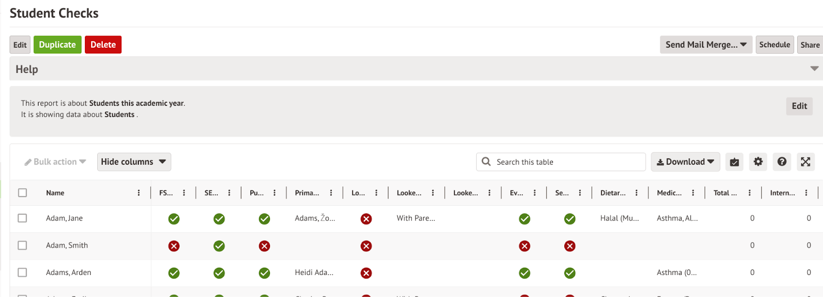 Step 1 - Pick a Sample of 10 students that you’ll check the data of in this Arbor report, against their data in your previous MIS - SIMS/Bromcom.  Choose a mix of students with different enrolments, SEN status and FSM or Pupil Premium eligibility.