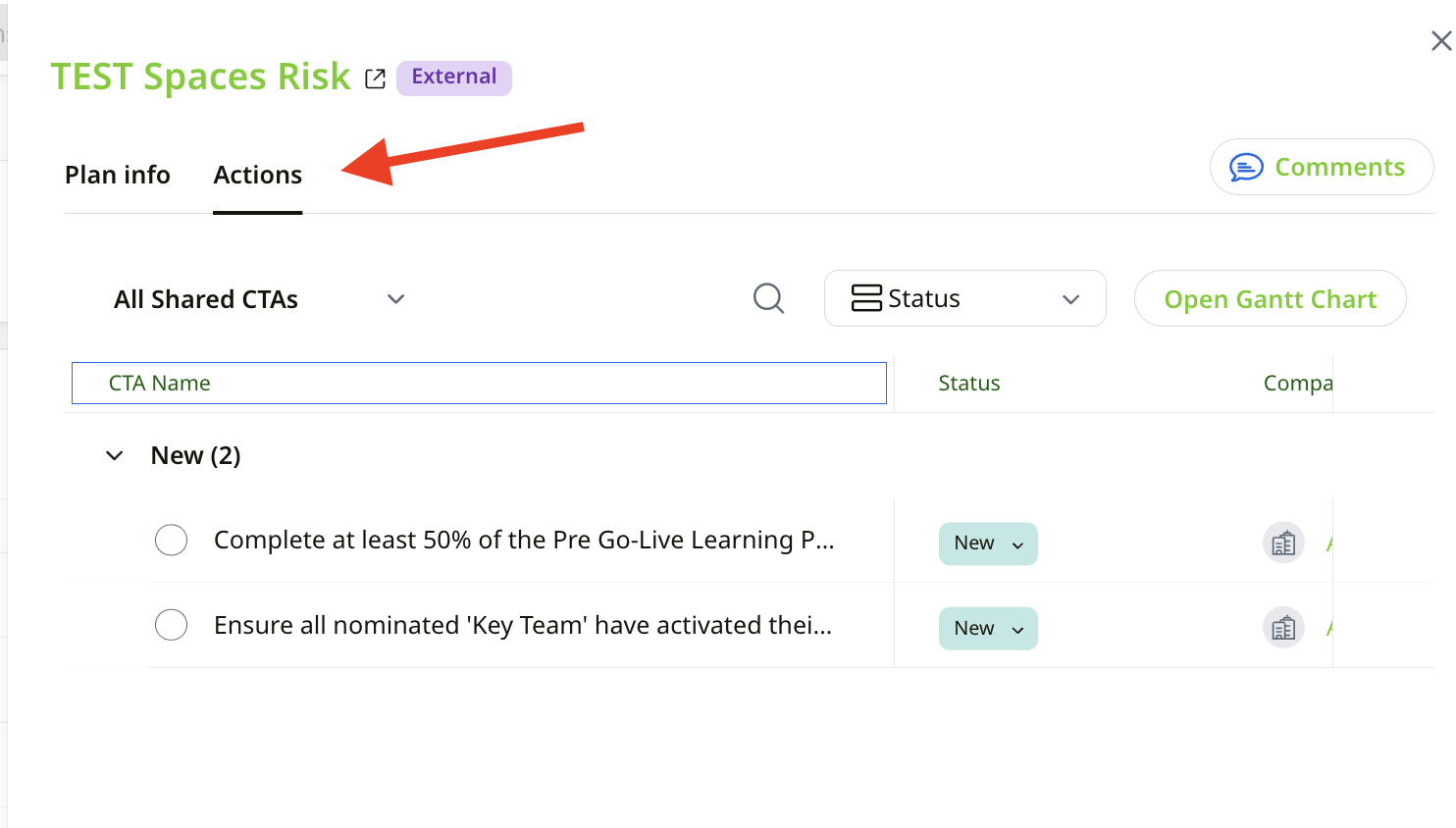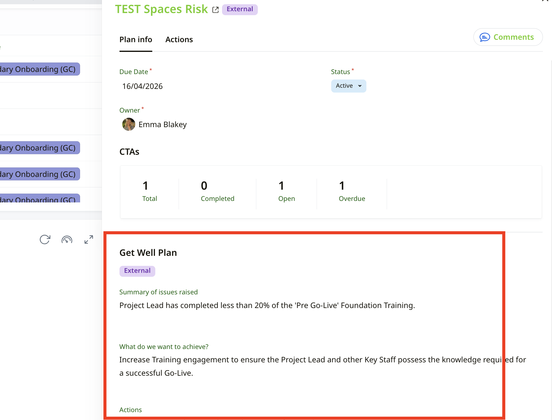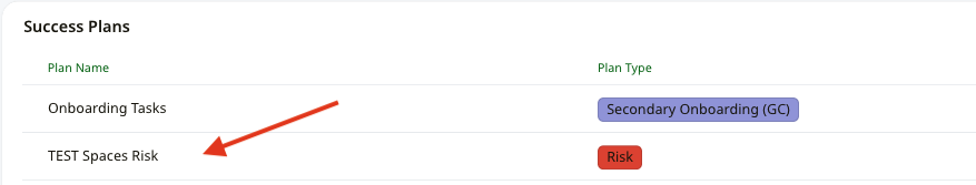 Risk Plan added to your Spaces account: This will appear under 'Success Plans'