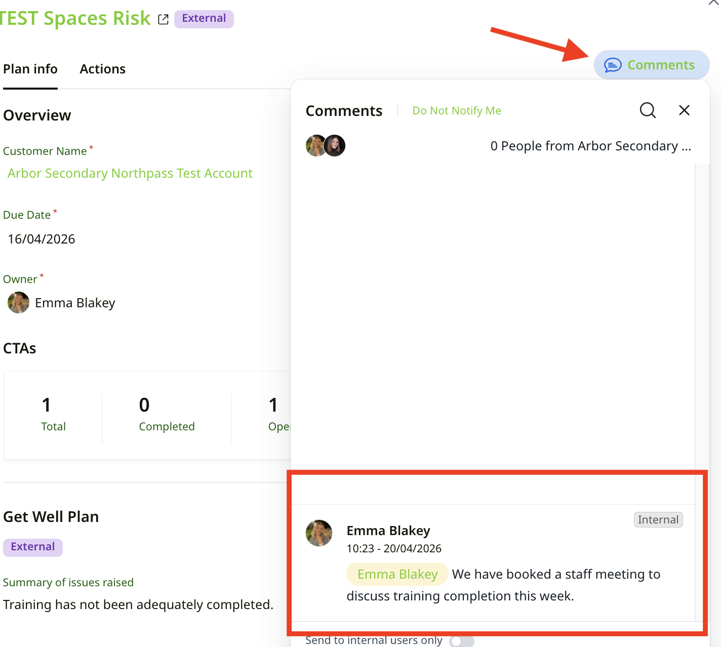The Risk Plan is designed to allow you and your Customer Onboarding Manager to collaborate on this risk and work together to mitigate it.