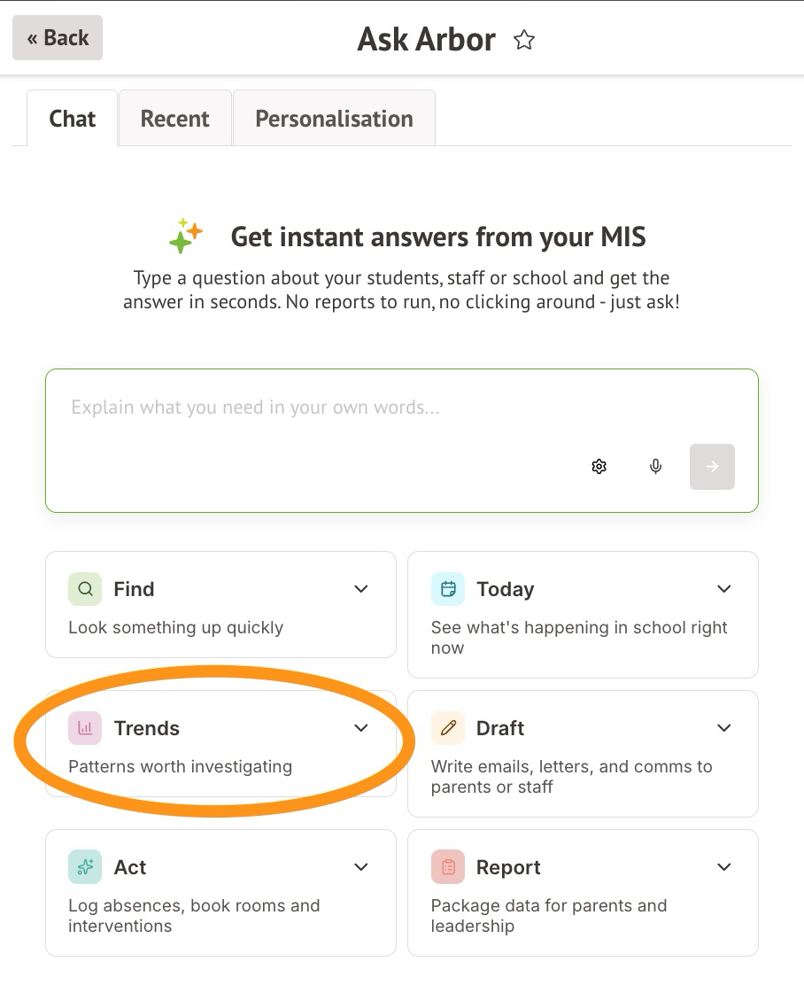 This guide provides examples of prompts you can use to analyse shifts over time, compare groups, and flag anomalies across your school data. These are also the types of prompts you can find when you click the Trends tile to start a new chat.