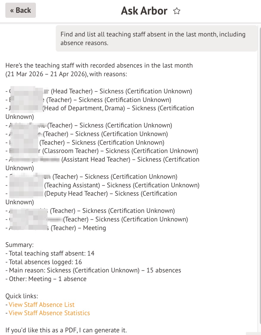 This guide is a part of our Ask Arbor Prompt Library series. The example prompts in this series show you the types of questions and requests you can make directly to Ask Arbor to save time, reduce admin, and get the insights you need - fast.