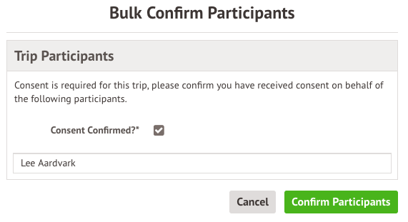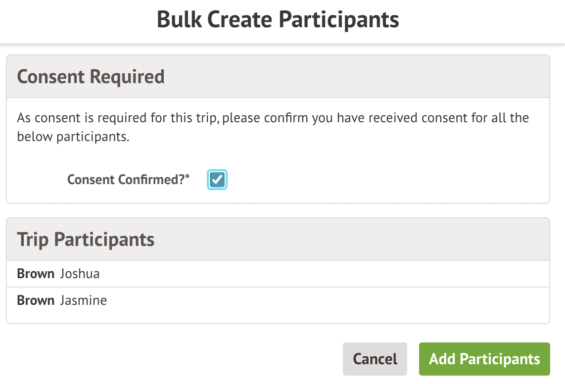 If consent was required, confirm in the slide over that this has been given then click Add Participants.