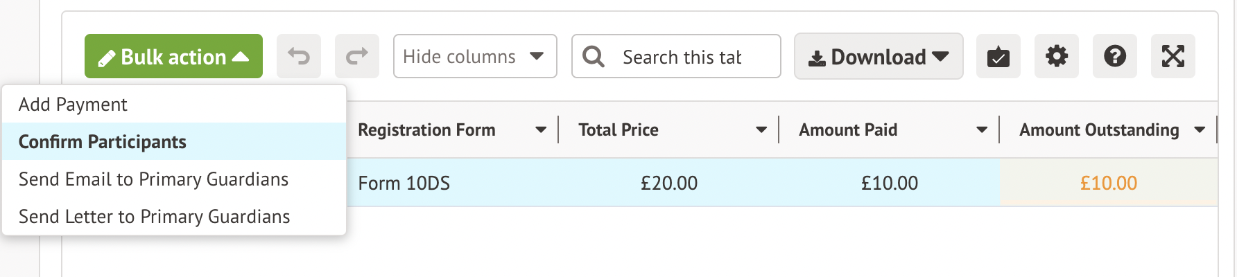 Alternatively, you can choose to confirm them as participants to book their place. Please note that in this case the full amount has not been paid.