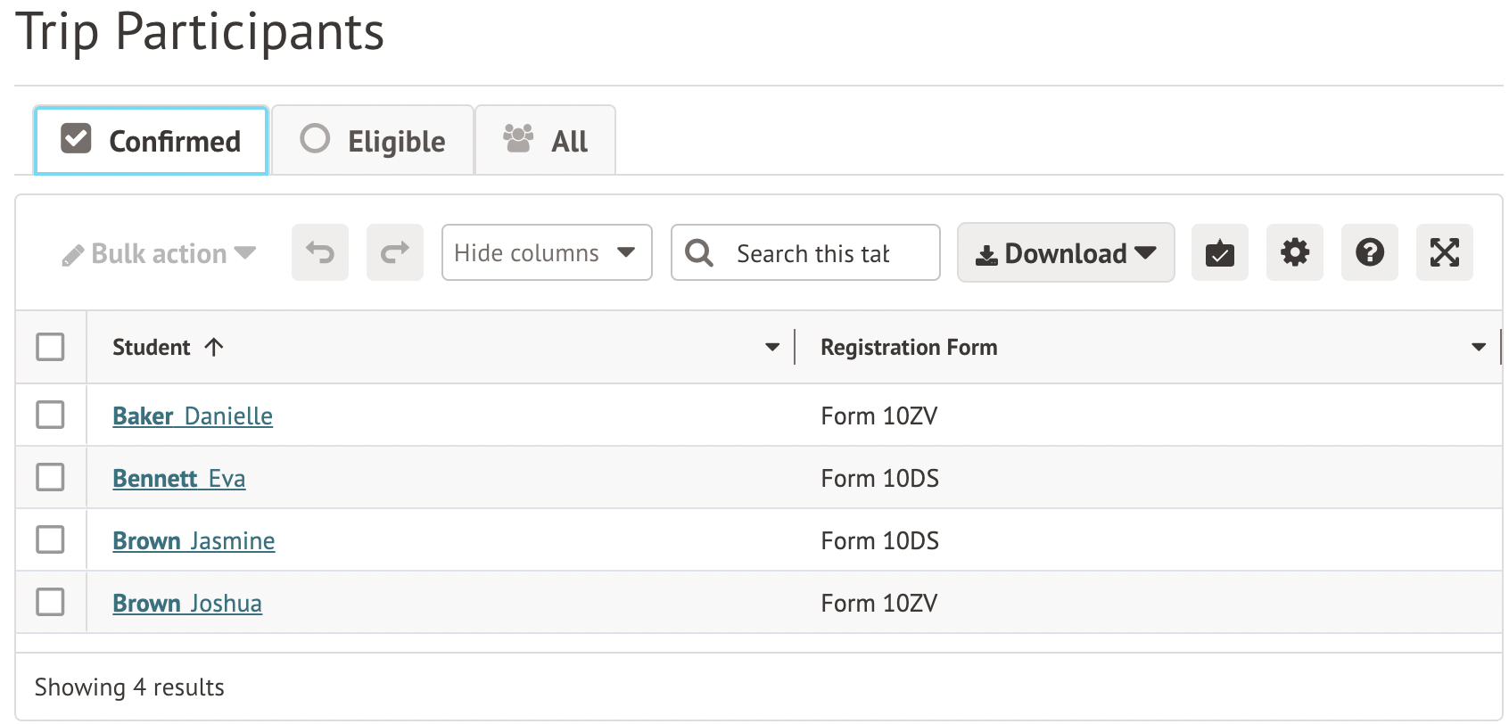 These students will then appear in the Confirmed tab.