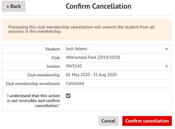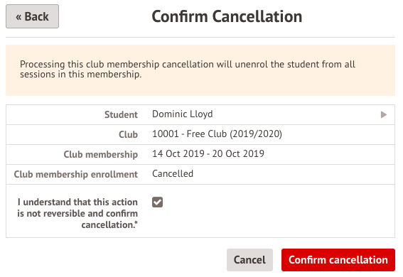 If the parent selected to sign their child up for the club without making a payment, you will only be able to cancel the membership.