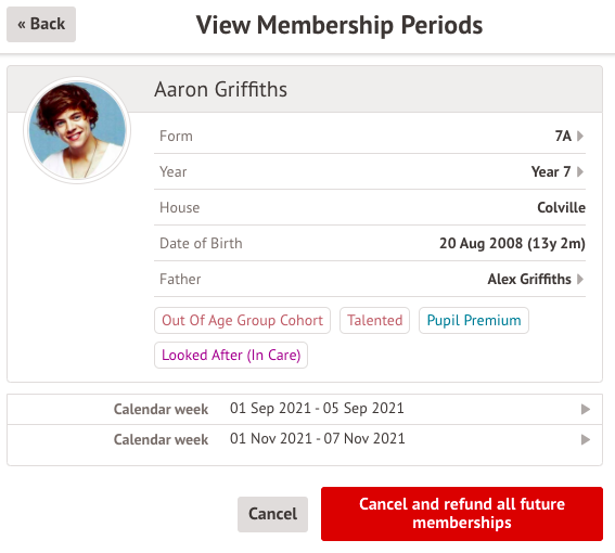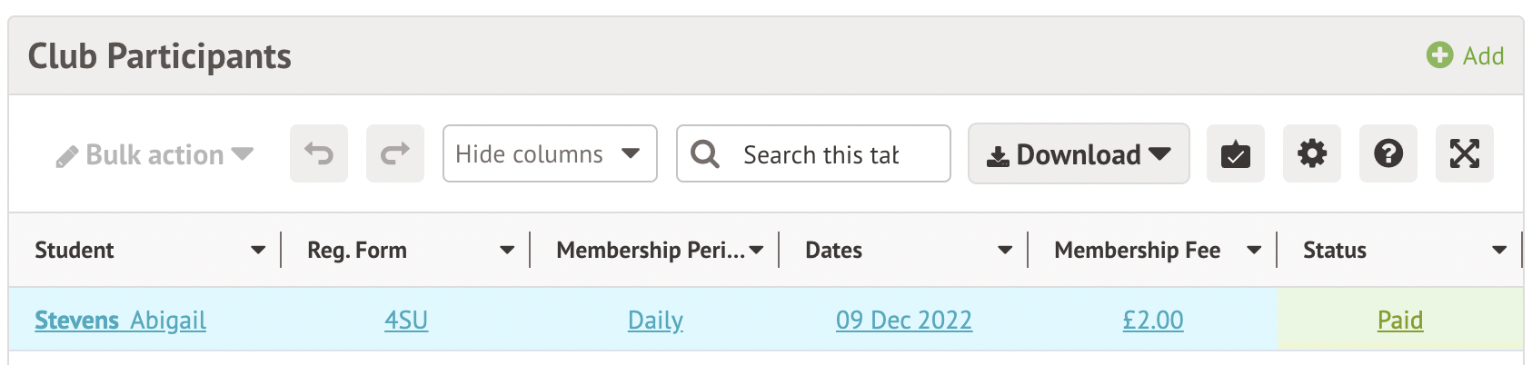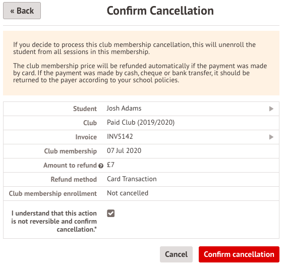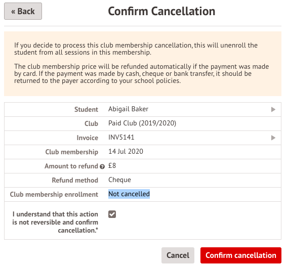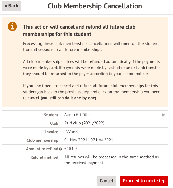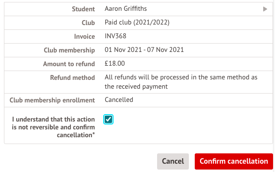 You can refund payments made by parents when signing their child up for a club. Please note that it is not possible to do this in bulk for all students in a club.