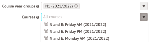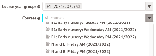 Use the Course year groups filter to narrow down the registers you can display in the table. If you select a year group here, we'll only show the registers linked to that year group, or that aren't linked to any year group (for when you have mixed year groups).