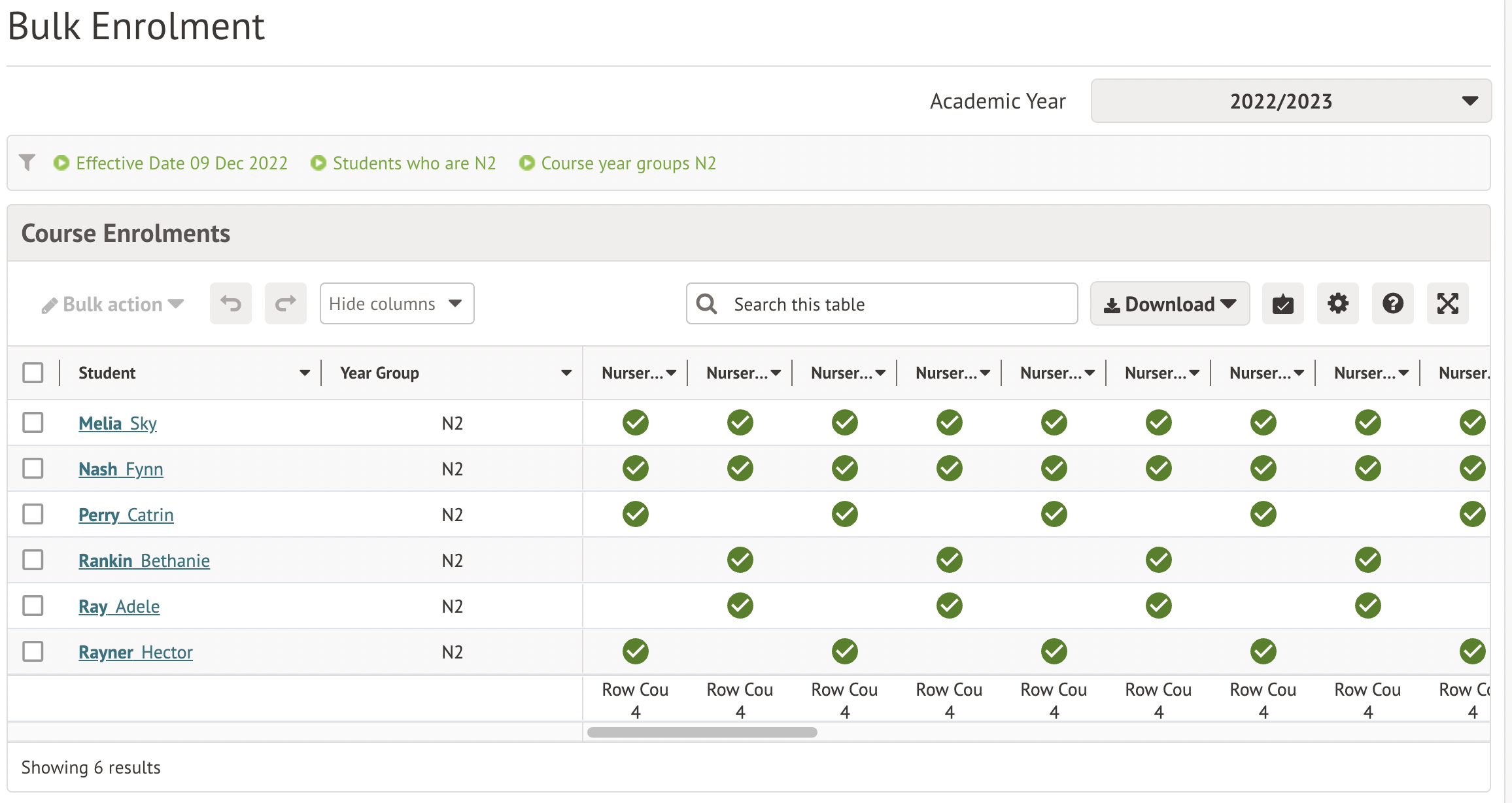 The enrolments will then process in the background. This can take some time for the enrolments to completely pull through onto this page, so you may need to refresh your page to get them to show.