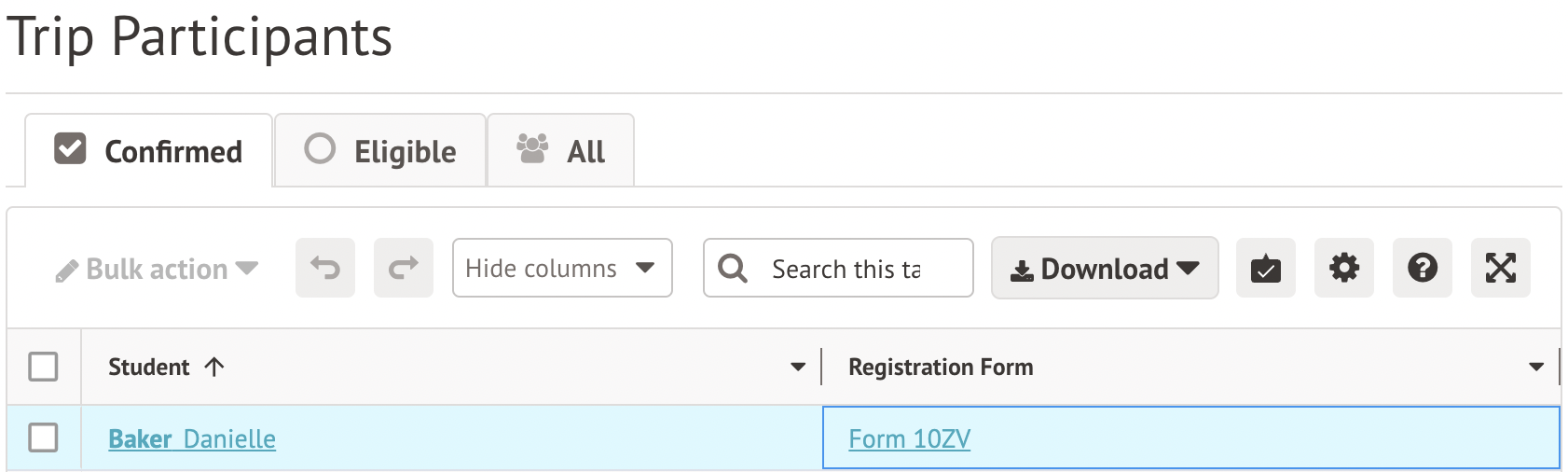 In the slide over, click to cancel the trip participation, and then confirm the cancellation. The student will then move back to the Eligible tab.