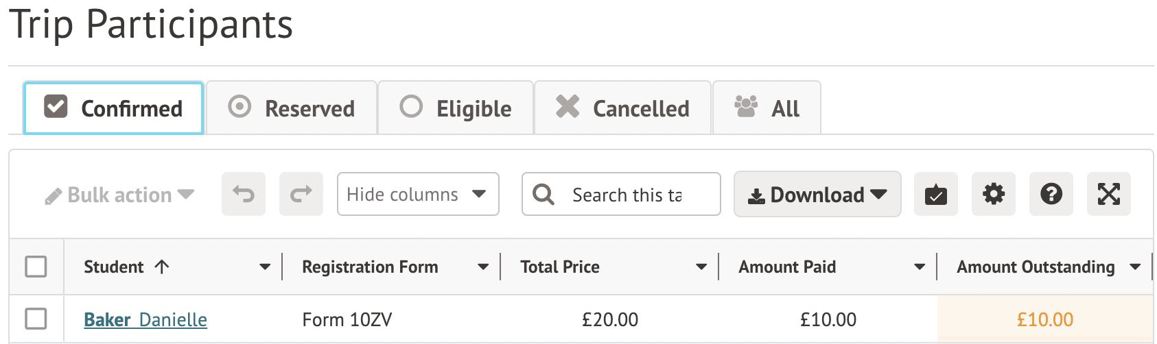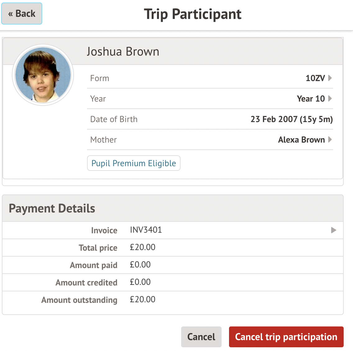 - you have allowed variable contributions for the trip - parents can choose not to pay at all when signing their child up, as shown here