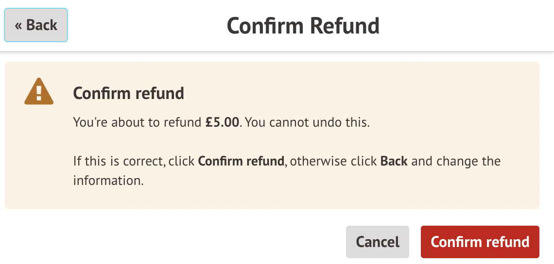 When you click the Refund only button, you can change the amount to refund, and select the refund method, then click Confirm refund.