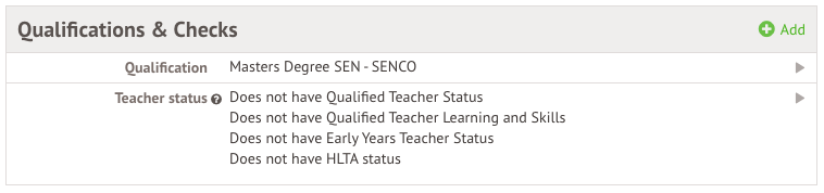 - If the staff member does have the qualification, you'll need to log this on their staff profile. Follow the instructions in this article in Step 5: Set up your SENCo for the Workforce Census