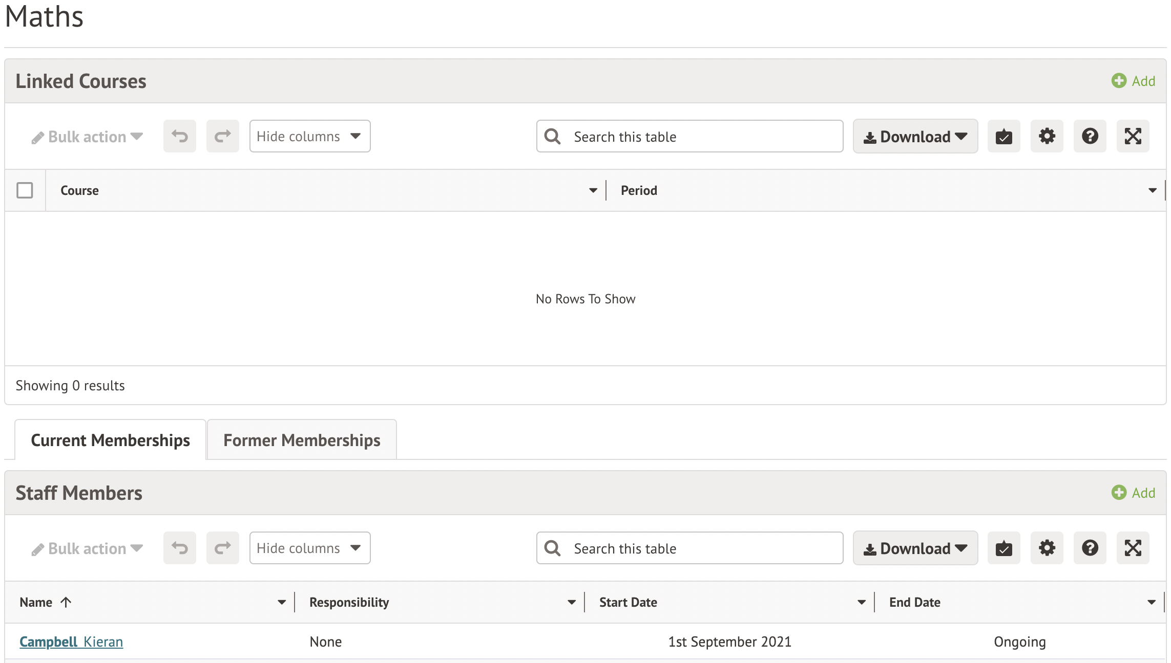 On the Overview page, you'll be able to see the classes and staff in your department.