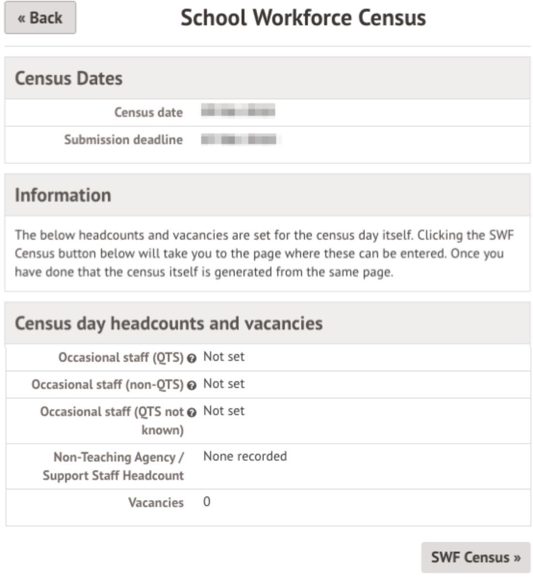 If it's not census day yet, please see our Workforce Census help and guidance, and how to prepare for Census Day: Preparing for the Workforce Census