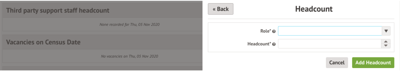 Add the role and the number of outside staff with this role, then click Add Headcount.