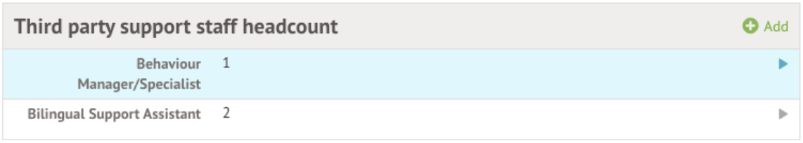 Click into the Occasional Teaching Staff Headcount section to add this information. You can add the number of each by clicking any row.