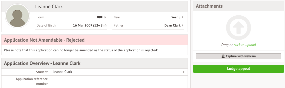 You will be taken to the Application Overview. To log an appeal, click the Lodge Appeal button.