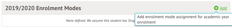 Go to the Student Profile of your nursery student and click Enrolment from the left-hand side. In the Enrolment Modes section click +Add.