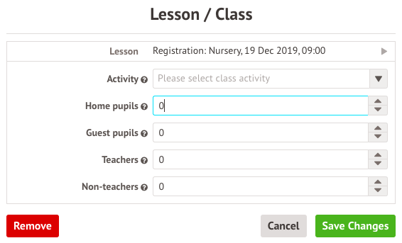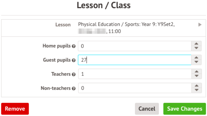 In the slide over, adjust the numbers of guest pupils and home pupils to the right number, then click Save Changes.