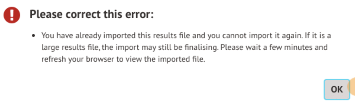 Once you confirm the deletion you'll be taken back to the Results Import page where you can reimport the corrected file.