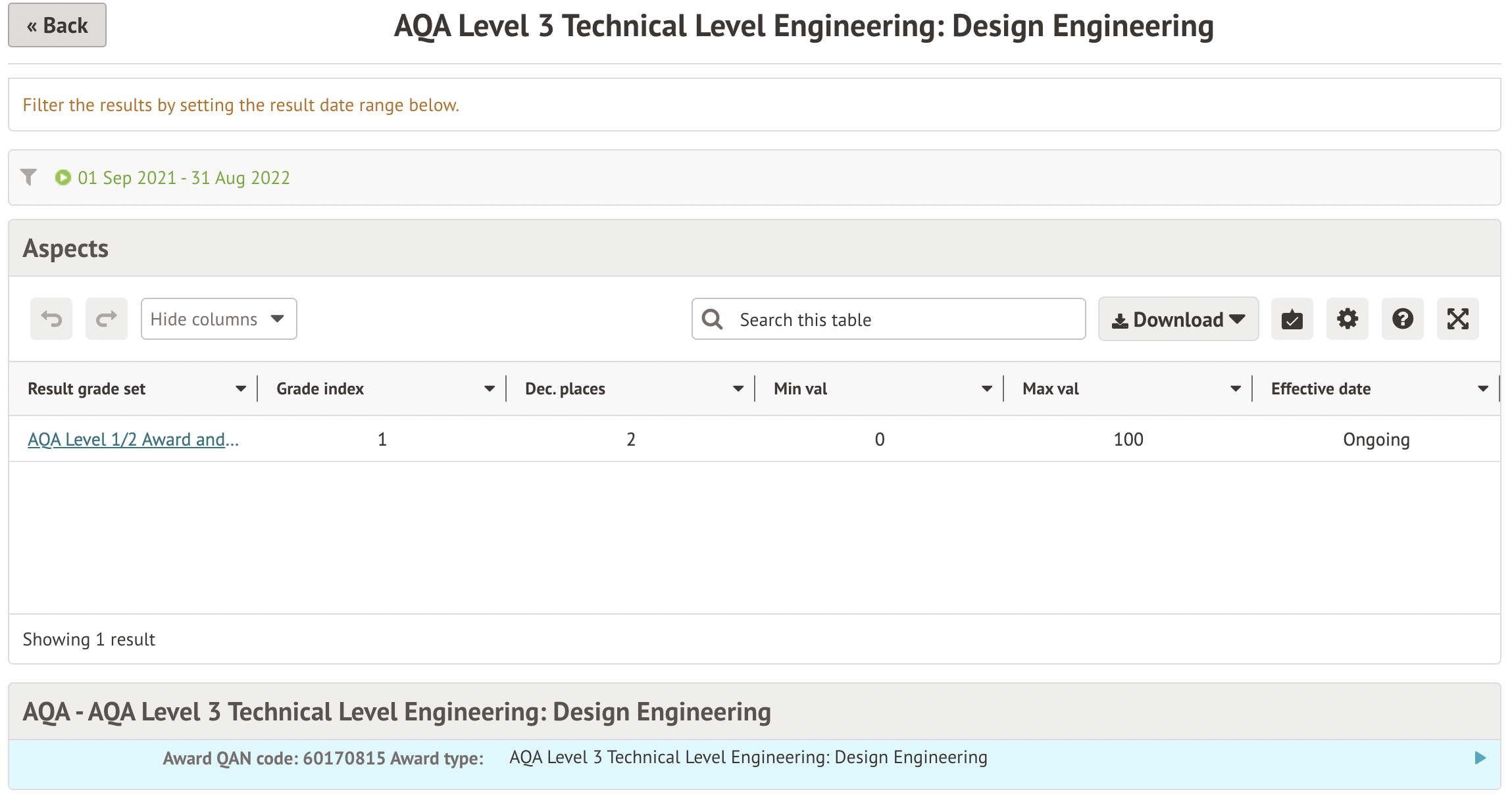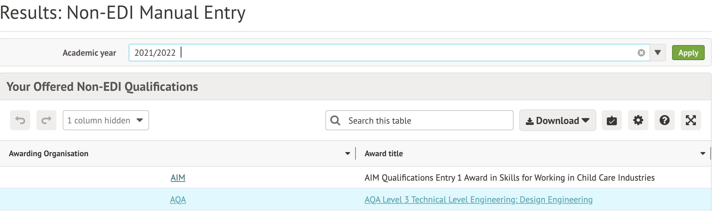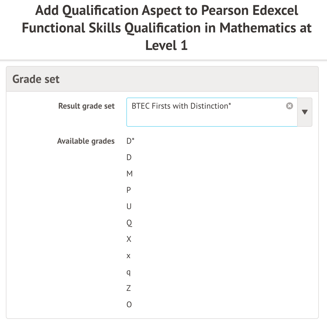 Click on the qualification you want to enter results for. If the qualification is EDI, we will have applied the Aspect automatically and this cannot be changed.