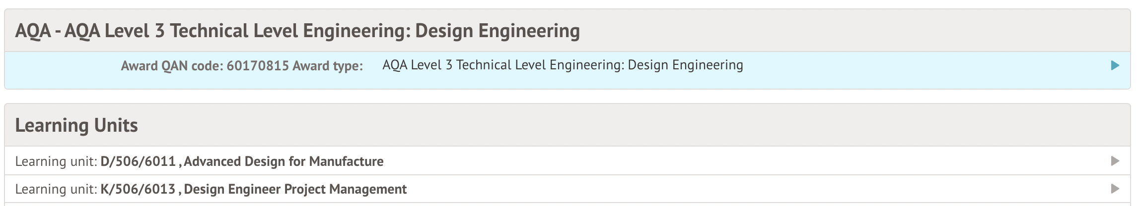 Click the learning unit to add a grade to a unit, or click the award to add a grade to the award.