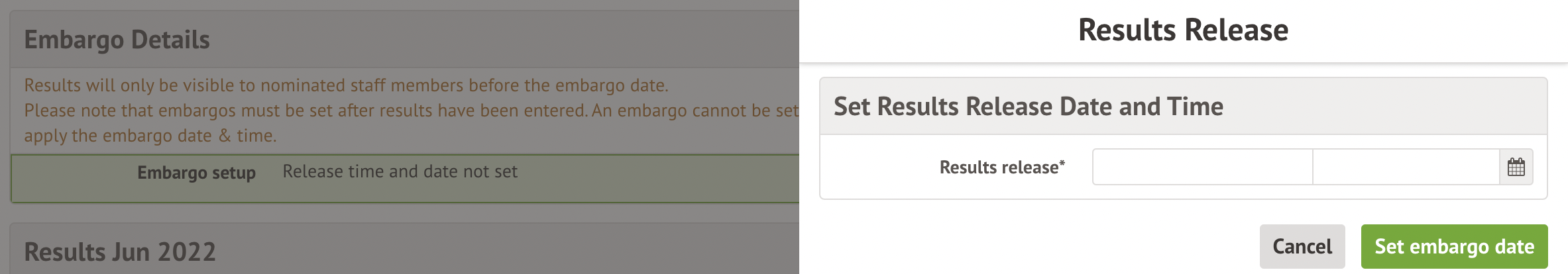 This should follow your school policy for viewing exam results before results day. Adding an embargo date will prevent people from viewing the results before they are officially released - you can see more details on this here.