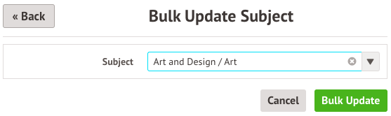 In the slide over that appears, select your desired subject from the drop-down menu, then click the 'Bulk Update' button.