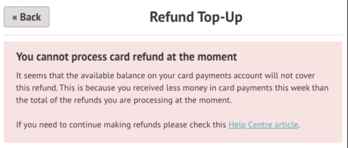 To help you when this issue happens, we've put together this article which details when you'll need to top up your account, how to check your available balance, and how to top up your account for refunding.