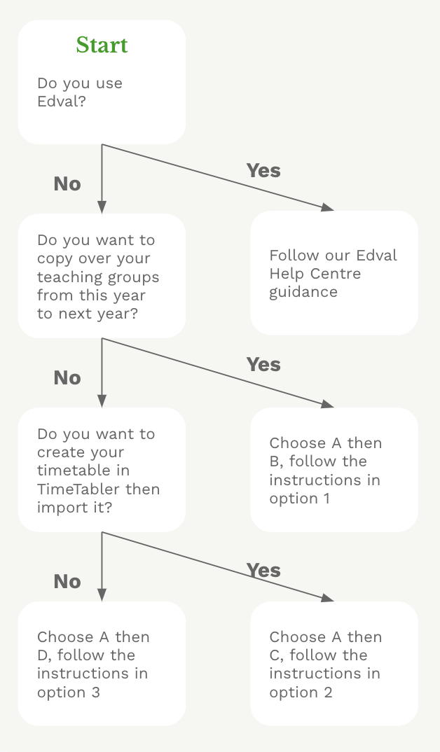 We recommend this option for schools that don’t use TimeTabler and don’t want to copy over teaching groups, or who don’t use teaching groups at all.