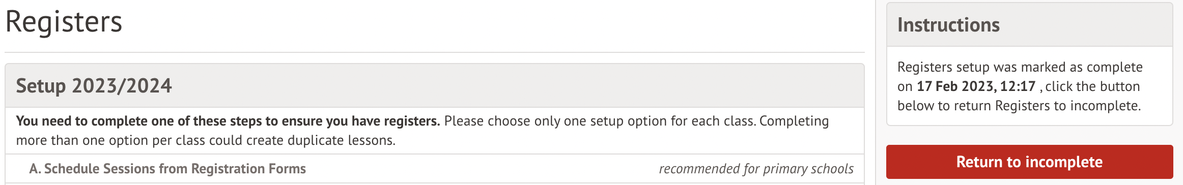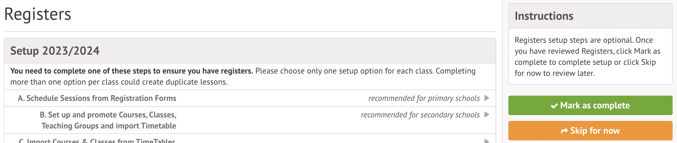 All schools must complete this step. If you do not complete this step, you will not have any registers in September.