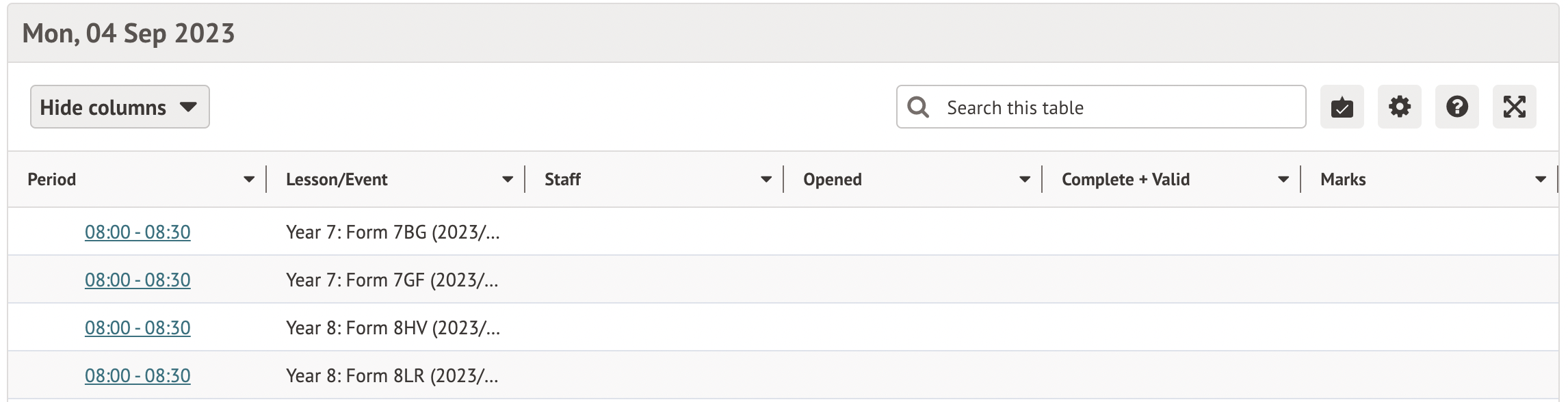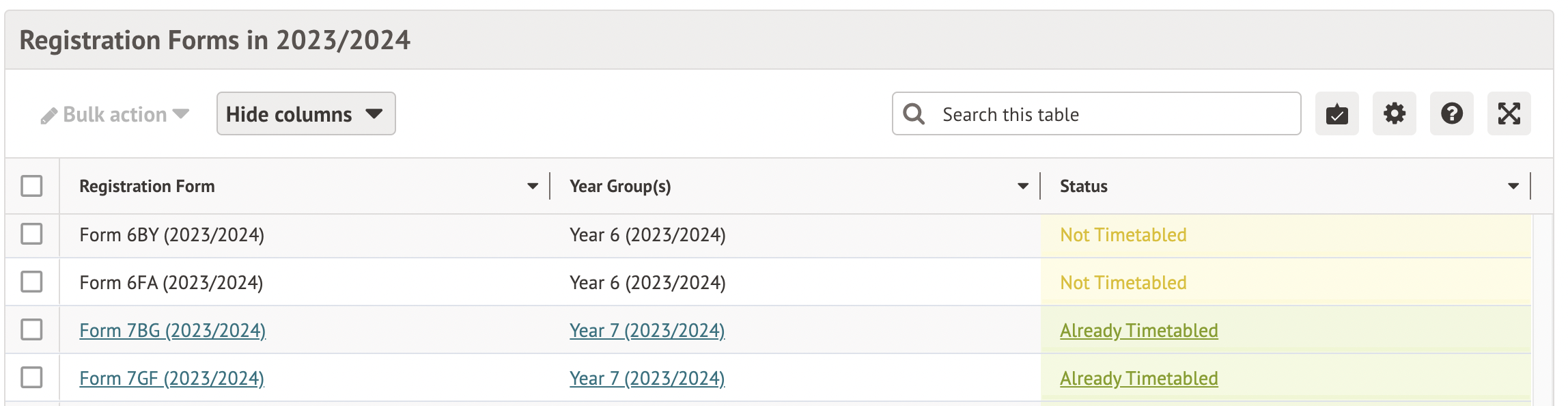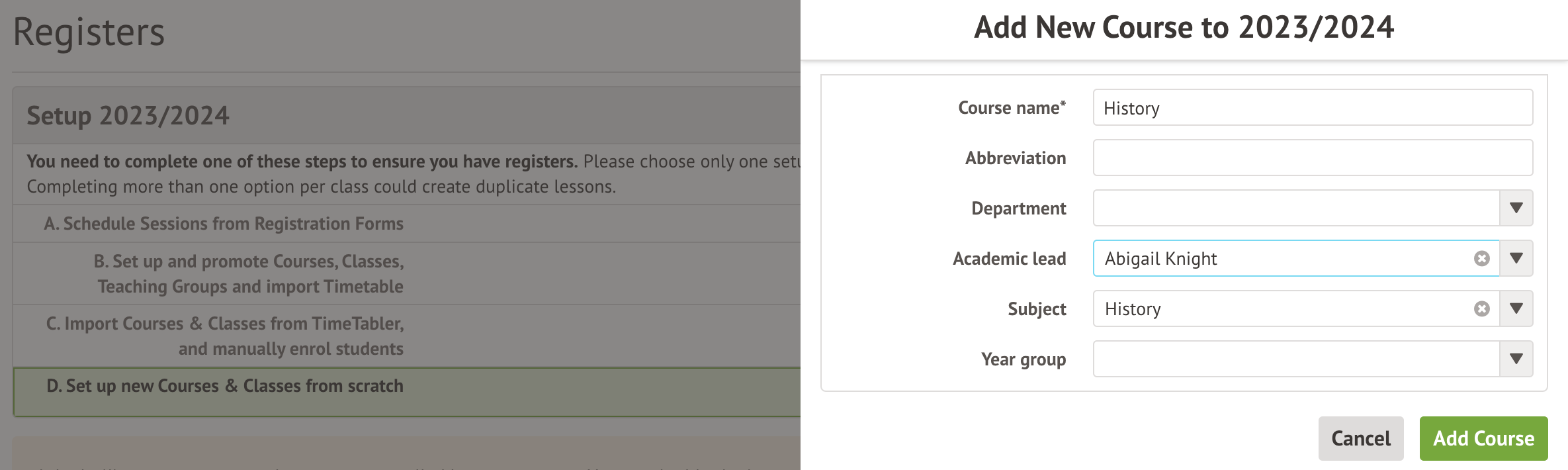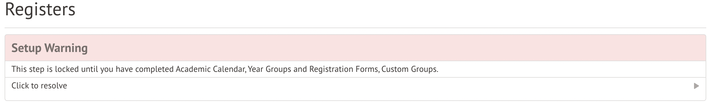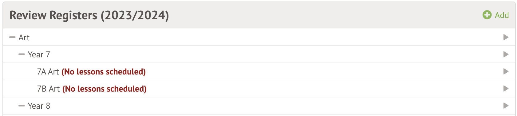 If you haven’t imported a timetable from TimeTabler, your courses will show that they don’t have lessons within 6. Registers section of the main New School Year Setup.
