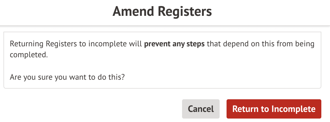 If you wish to return to this step and make any changes, click the red Return to incomplete button.